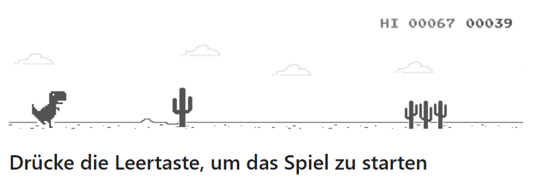 - Du startest das Dino-Spiel bewusst, auch wenn dein Internet problemlos läuft.