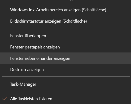 Fenster mit Tastenkombinationen nebeneinander anzeigen