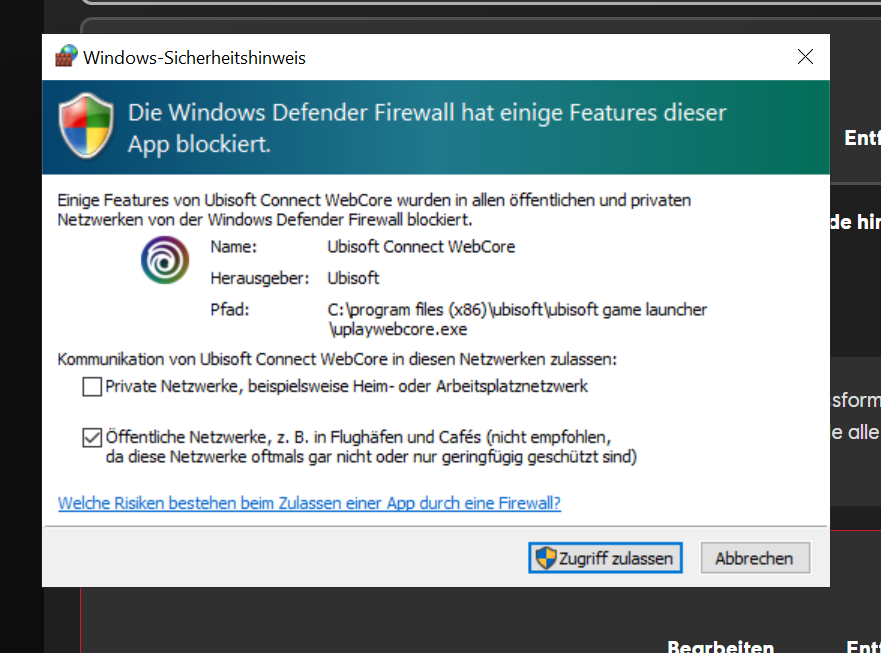 Firewall-Hinweis abwarten
