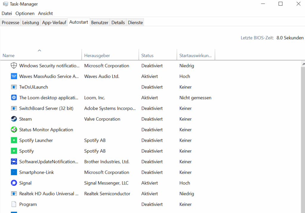 Im Task-Manager gibt es die Spalte „Auswirkung beim Start“. Dort siehst du sofort, wer bremst.